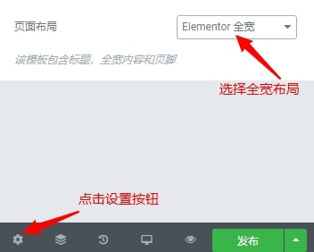 然后在页面布局中设置为 Elementor全宽,这样Elementor编辑器就是全宽度了