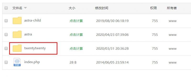 一般主题文件夹会和主题同名,比如我用的twentytwenty主题文件夹就是twentytwenty