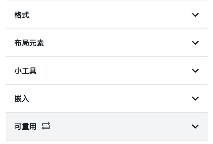 当你添加了第一个可重用区块之后,就会在区块编辑器中看到可重用区块分组了