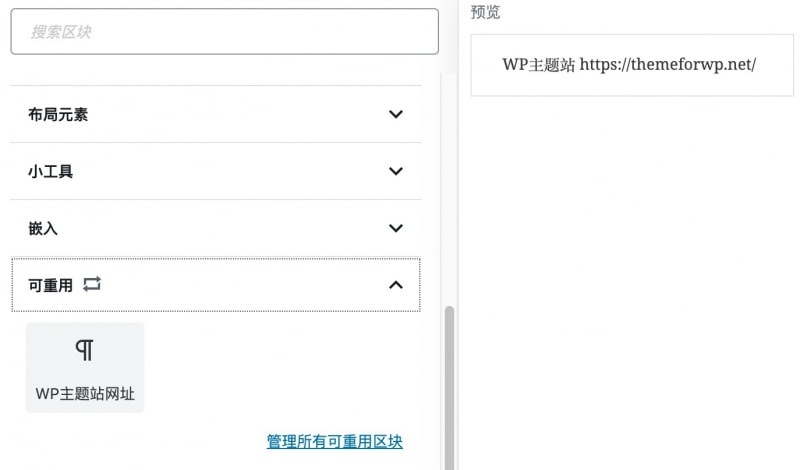 如果你对可重用区块有更高的需求,管理非常多的区块,WordPress 还提供了一个单独的可重用区块管理器,让你可以像管理文章一样管理重用区块
