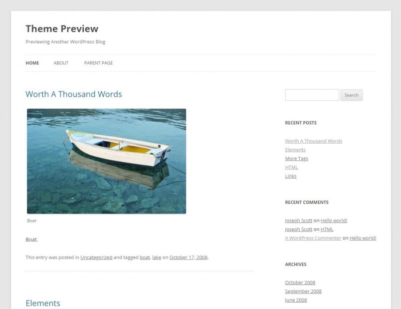 Twenty Twelve是一款非常适合个人博客使用的主题,白色的背景和简洁的小功具,让你能够专注在写作的事情上。虽然是一款已经发行多年的wordpress官方主题,至今仍然有许多博客采用这款白色背景风格的主题,团队也一直在维护,绝对不会出现某天WordPress升级了,主题不能用的情况,所以如果你想使用免费主题,想更加省心,使用这款主题绝对不会错