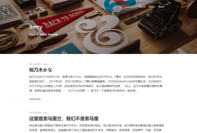 Berry是国人由Bitcron整理出来的一款WordPress极简主题,非常好看的顶部特色图,单栏文章列表页以及详情页,主题虽然简单,但是该有的功能都有了,非常适合那些只想安静写博客的人
