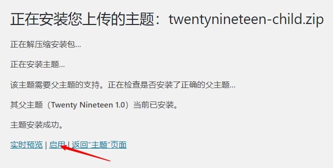 如果在安装完成后你看到如上图的界面,WordPress自动辨识出父主题,表示子主题已经安装成功了,启用即可