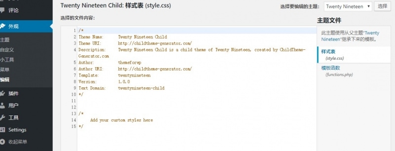 子主题安装好以后,你可以在这里修改style.css和functions.php,这里面的修改都是永久的,或者你也可以重写父主题的模版文件,对主题进行二次开发等操作