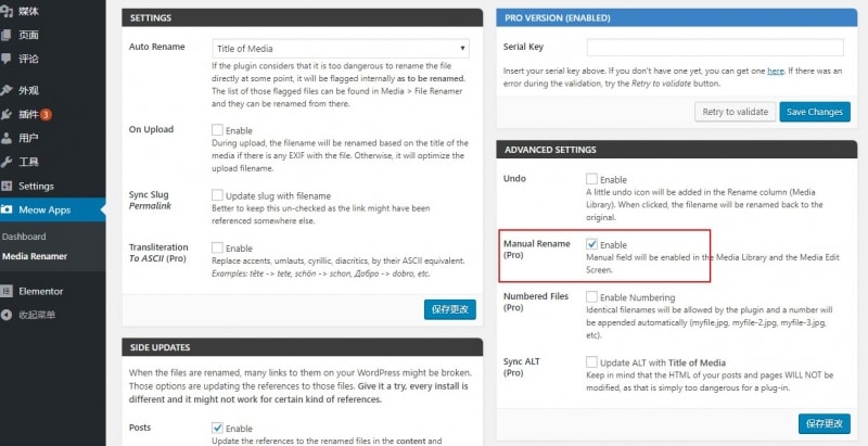我们都知道WordPress本身并没有提供修改文件名的功能,默认情况下文件名是无法修改的,所以需要先安装一款Media File Renamer Pro插件
