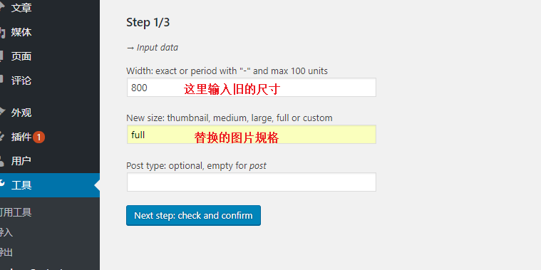 - 新的规格:替换的图片尺寸,这里会替换新生成的图片,有 thumbnail、medium、large、full等几个选择