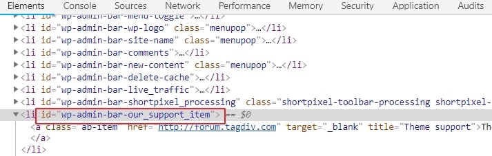 我们从代码中可以看出,这个id是 wp-admin-bar-our_support_item