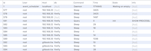 SHOW PROCESSLIST //列出执行命令。